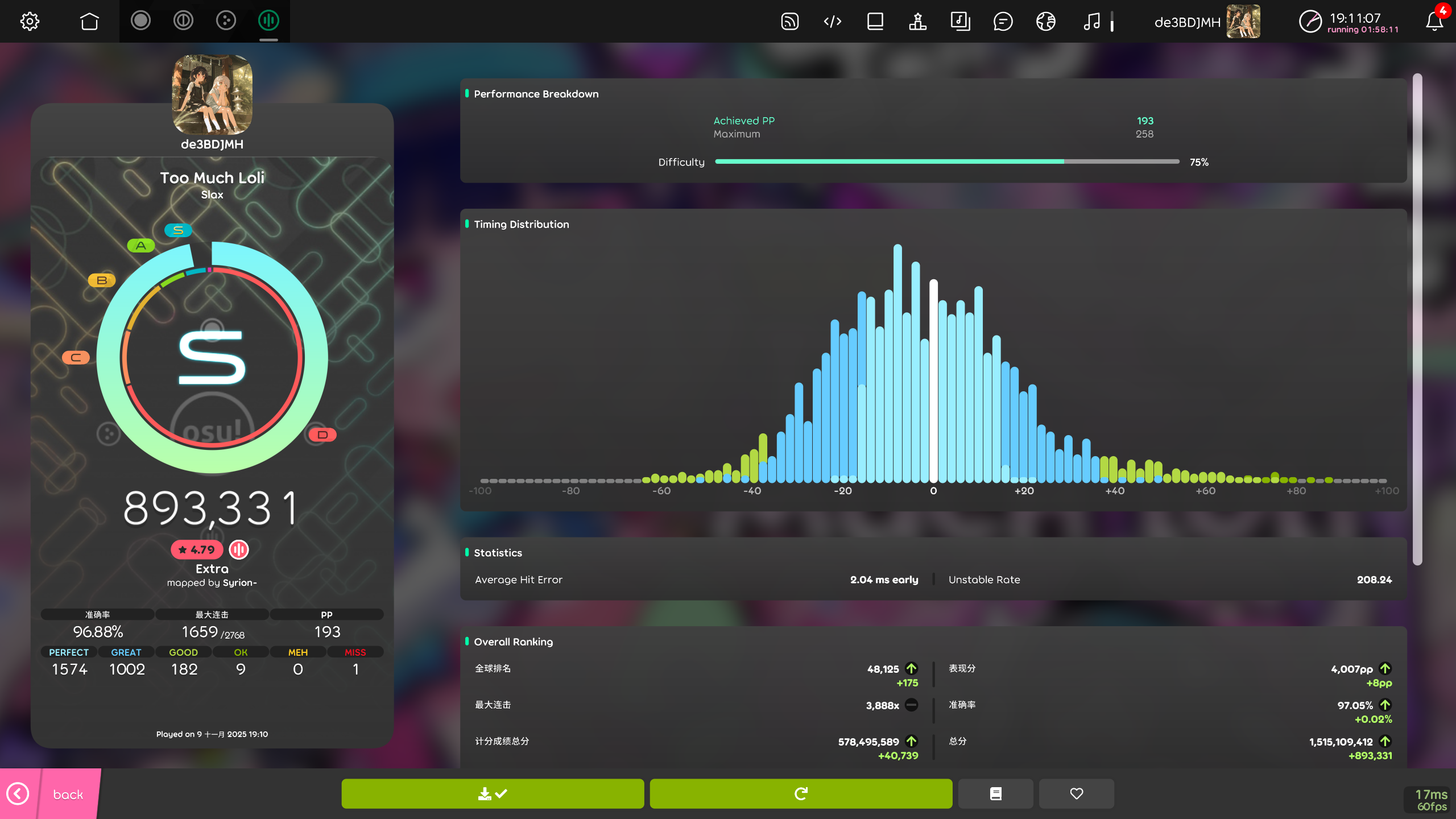 上4000前几天osu大更新了数据,导致成绩都不会更新